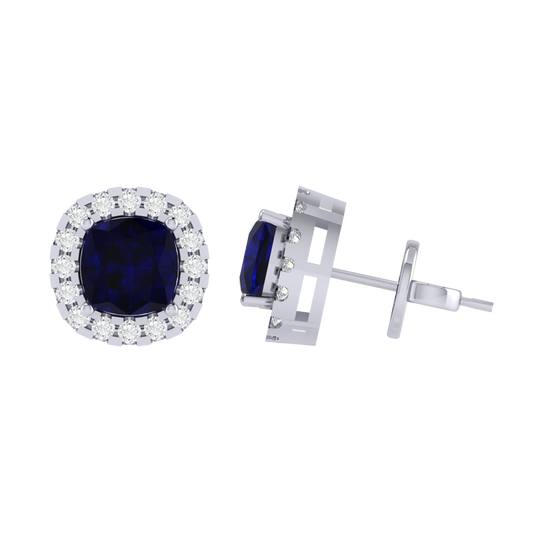 Gold Plated Sterling Silver Cushion Cut Sapphire Gemstone Stud Earring