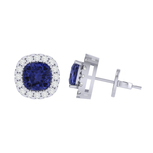 Gold Plated Sterling Silver Cushion Cut Tanzanite Gemstone Stud Earring
