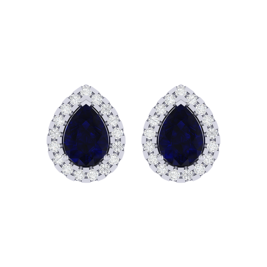 Gold Plated Sterling Silver Pear Cut Sapphire Gemstone Stud Earring