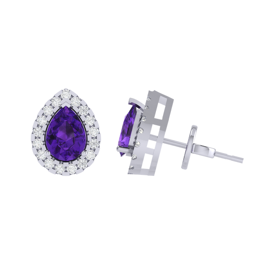 Gold Plated Sterling Silver Pear Cut Amethyst Gemstone Stud Earring