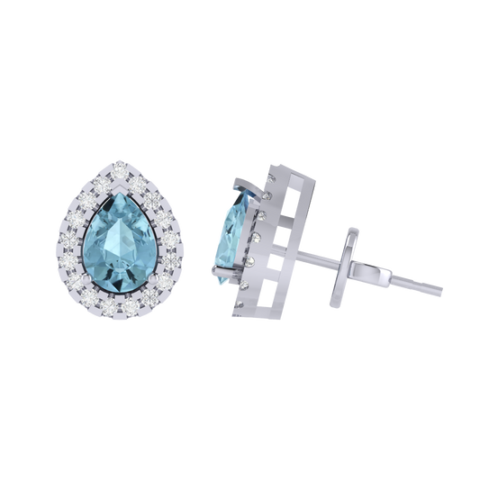 Gold Plated Sterling Silver Pear Cut Aquamarine Gemstone Stud Earring