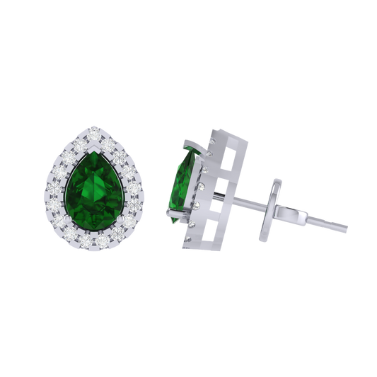 Gold Plated Sterling Silver Pear Cut Emerald Gemstone Stud Earring