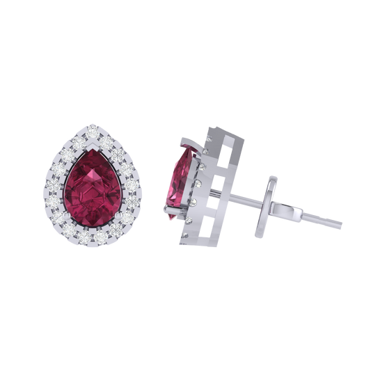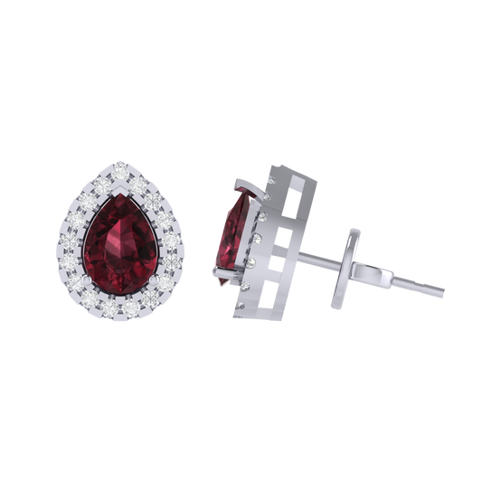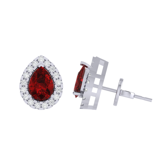 Gold Plated Sterling Silver Pear Cut Ruby Gemstone Stud Earring