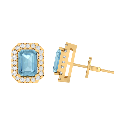 Gold Plated Sterling Silver Emerald Cut Aquamarine Gemstone Stud Earring