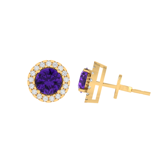 Gold Plated Sterling Silver Round Cut Amethyst Gemstone Stud Earring