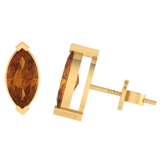 Gold Plated Sterling Silver Marquise Shape Citrine Gemstone(November Birthstone) Stud Earring