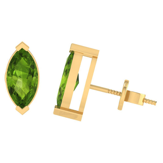 Gold Plated Sterling Silver Marquise Shape Peridot Gemstone(August Birthstone) Stud Earring