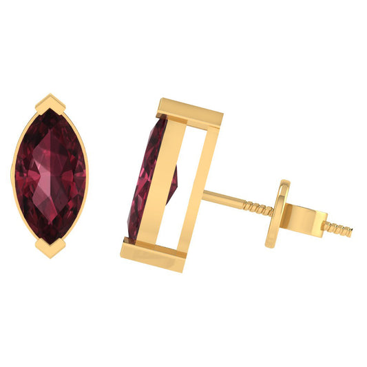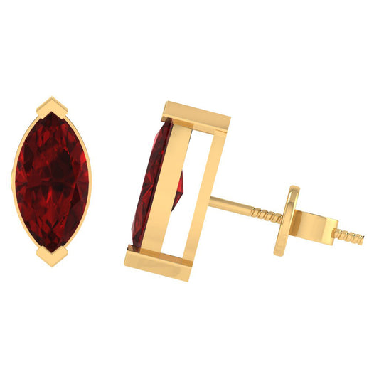 Gold Plated Sterling Silver Marquise Shape Garnet Gemstone(January Birthstone) Stud Earring
