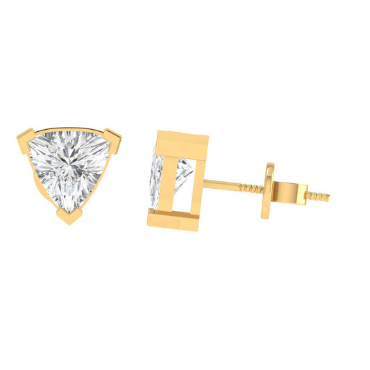 Gold Plated Sterling Silver Trillion Cut Cubic Zirconia Diamond(April Birthstone) Stud Earring