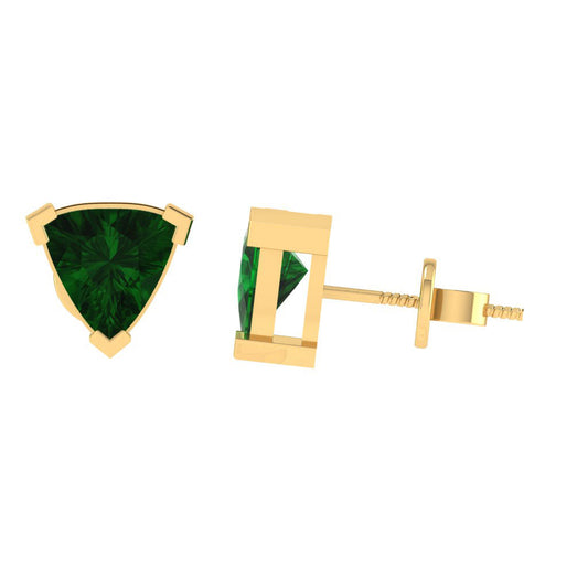 Gold Plated Sterling Silver Trillion Cut Emerald Gemstone(May Birthstone) Stud Earring