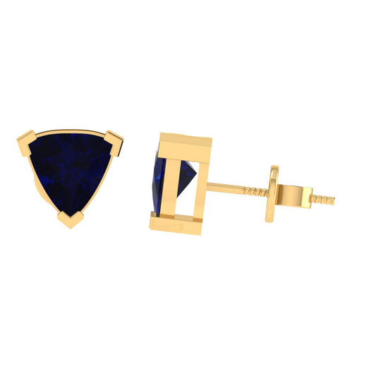 Gold Plated Sterling Silver Trillion Cut Sapphire Gemstone(September Birthstone) Stud Earring