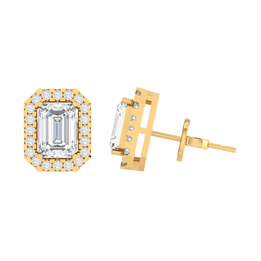Gold Plated Sterling Silver Emerald Cut Cubic Zirconia Gemstone Stud Earring