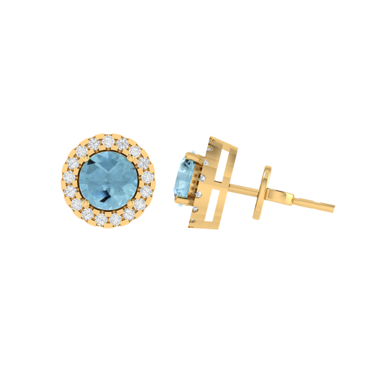 Gold Plated Sterling Silver Round Cut Aquamarine Gemstone Stud Earring