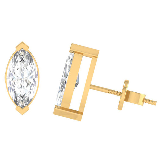 Gold Plated Sterling Silver Marquise Shape Cubic Zirconia Diamond(April Birthstone) Stud Earring