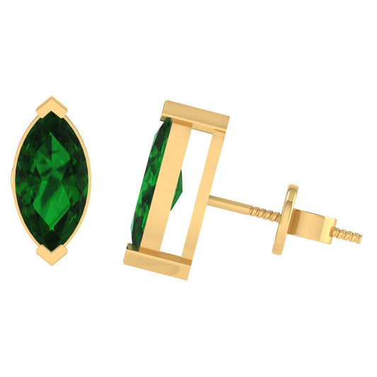 Gold Plated Sterling Silver Marquise Shape Emerald Gemstone(May Birthstone) Stud Earring