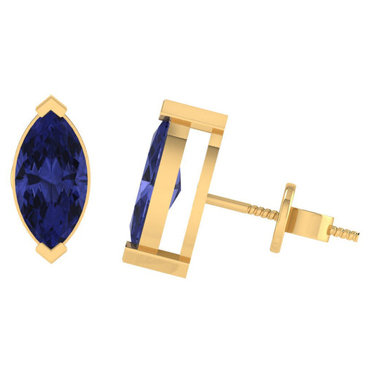 Gold Plated Sterling Silver Marquise Shape Tanzanite Gemstone(December Birthstone) Stud Earring