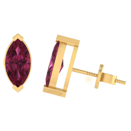 Gold Plated Sterling Silver Marquise Shape Ruby Gemstone(July Birthstone) Stud Earring