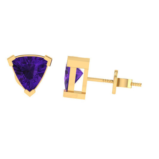Gold Plated Sterling Silver Trillion Cut Amethyst Gemstone(February Birthstone) Stud Earring