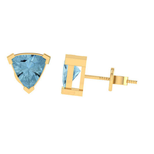Gold Plated Sterling Silver Trillion Cut Aquamarine Gemstone(March Birthstone) Stud Earring