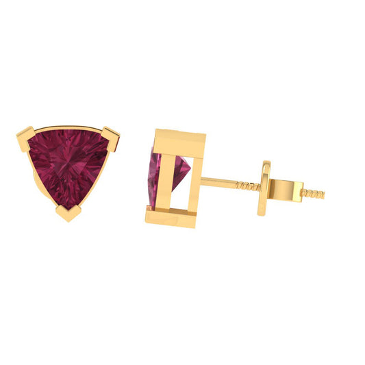 Gold Plated Sterling Silver Trillion Cut Garnet Gemstone(January Birthstone) Stud Earring