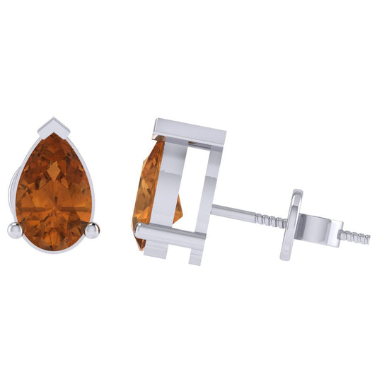 Gold Plated Sterling Silver Pear Shape Citrine Gemstone(November Birthstone) Stud Earring