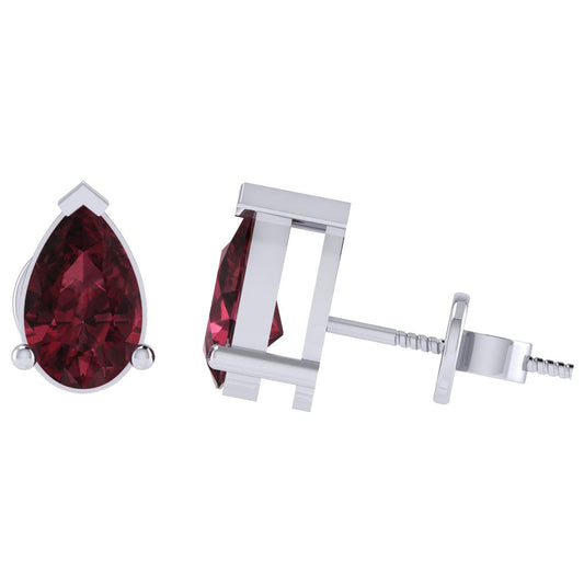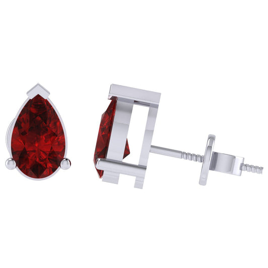 Gold Plated Sterling Silver Pear Shape Ruby Gemstone(July Birthstone) Stud Earring