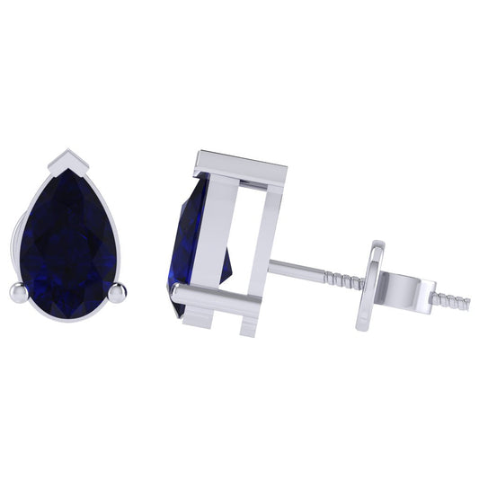 Gold Plated Sterling Silver Pear Shape Sapphire Gemstone(September Birthstone) Stud Earring