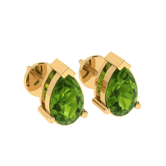 Gold Plated Sterling Silver Pear Shape Peridot Gemstone(August Birthstone) Stud Earring