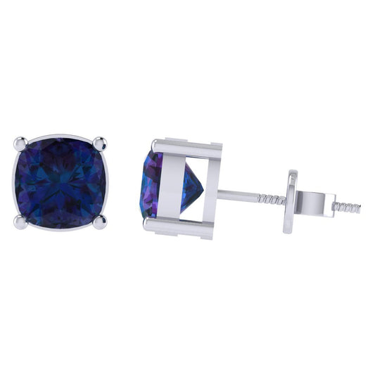 Gold Plated Sterling Silver Cushion Shape Alexandrite Gemstone(June Birthstone) Stud Earring