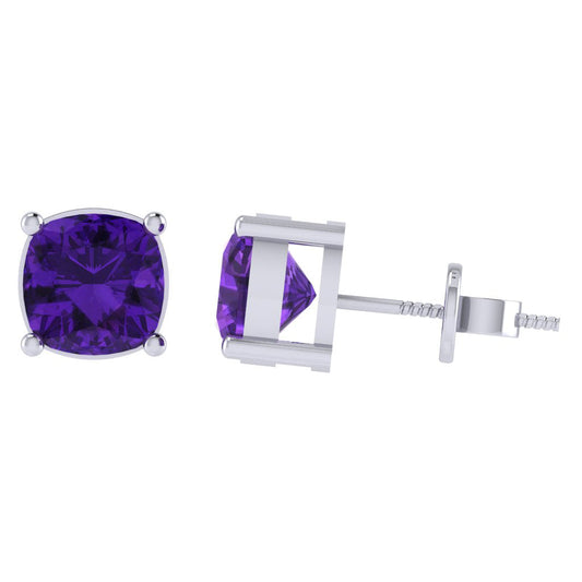Gold Plated Sterling Silver Cushion Shape Amethyst Gemstone(February Birthstone) Stud Earring