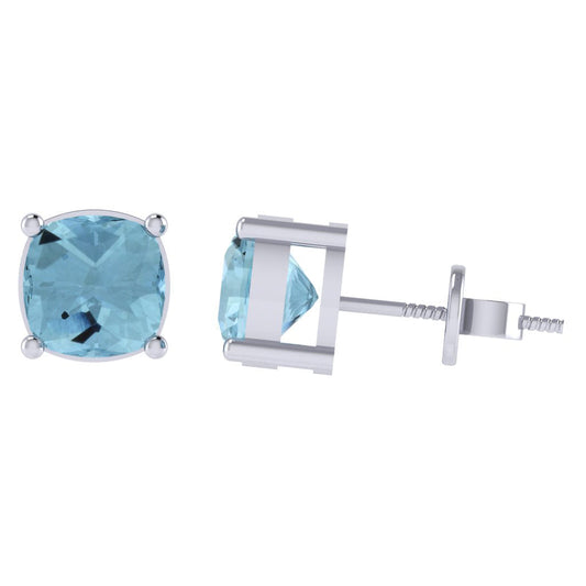Gold Plated Sterling Silver Cushion Shape Aquamarine Gemstone(March Birthstone) Stud Earring