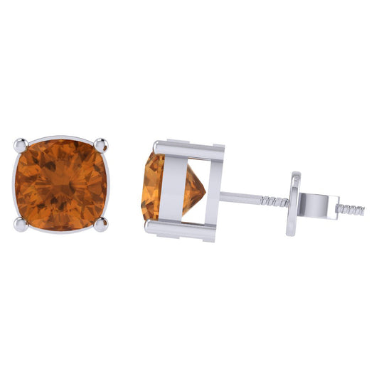 Gold Plated Sterling Silver Cushion Shape Citrine Gemstone(November Birthstone) Stud Earring