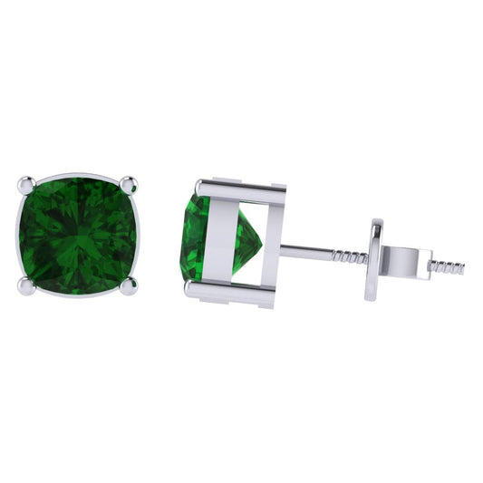 Gold Plated Sterling Silver Cushion Shape Emerald Gemstone(May Birthstone) Stud Earring