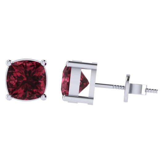 Gold Plated Sterling Silver Cushion Shape Garnet Gemstone(January Birthstone) Stud Earring