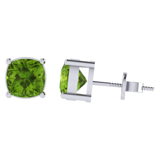 Gold Plated Sterling Silver Cushion Shape Peridot Gemstone(August Birthstone) Stud Earring