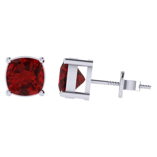 Gold Plated Sterling Silver Cushion Shape Ruby Gemstone(July Birthstone) Stud Earring