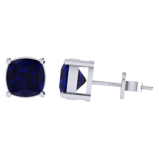 Gold Plated Sterling Silver Cushion Shape Sapphire Gemstone(September Birthstone) Stud Earring
