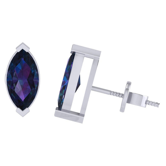 Gold Plated Sterling Silver Marquise Shape Alexandrite Gemstone(June Birthstone) Stud Earring