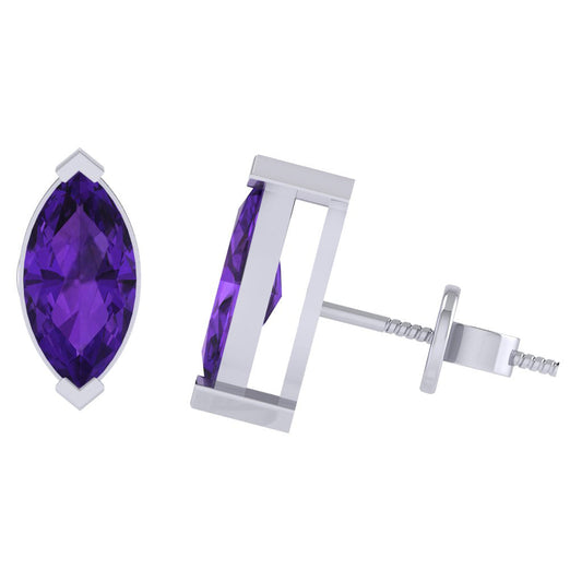 Gold Plated Sterling Silver Marquise Shape Amethyst Gemstone(February Birthstone) Stud Earring