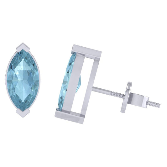Gold Plated Sterling Silver Marquise Shape Aquamarine Gemstone(March Birthstone) Stud Earring