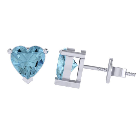 Gold Plated Sterling Silver Heart Shape Aquamarine Gemstone(March Birthstone) Stud Earring