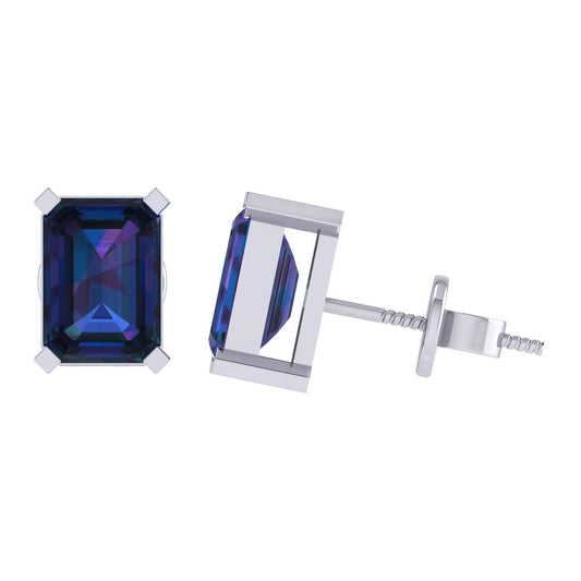 Gold Plated Sterling Silver Emerald Shape Alexandrite Gemstone(June Birthstone) Stud Earring