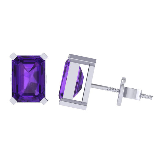 Gold Plated Sterling Silver Emerald Shape Amethyst Gemstone(February Birthstone) Stud Earring