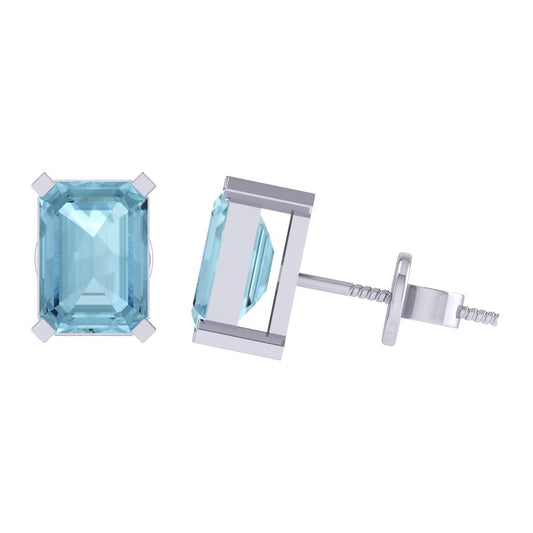 Gold Plated Sterling Silver Emerald Shape Aquamarine Gemstone(March Birthstone) Stud Earring