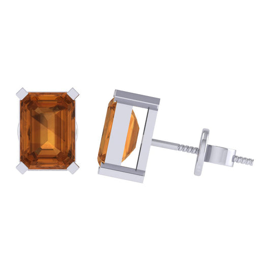 Gold Plated Sterling Silver Emerald Shape Citrine Gemstone(November Birthstone) Stud Earring