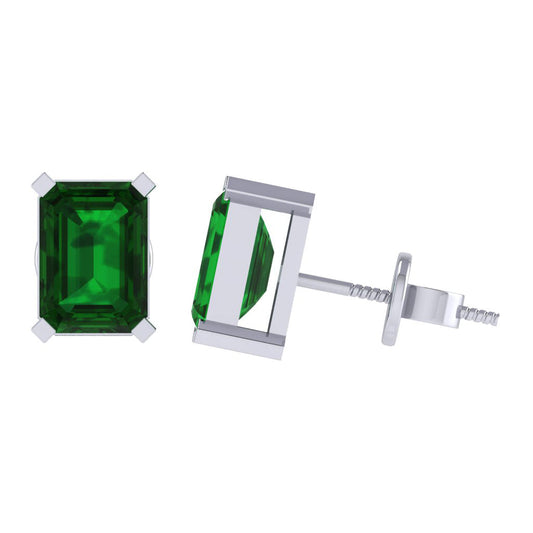 Gold Plated Sterling Silver Emerald Shape Emerald Gemstone(May Birthstone) Stud Earring