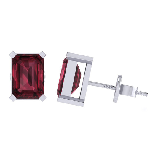 Gold Plated Sterling Silver Emerald Shape Ruby Gemstone(July Birthstone) Stud Earring