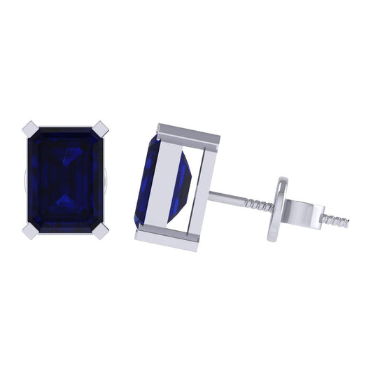 Gold Plated Sterling Silver Emerald Shape Sapphire Gemstone(September Birthstone) Stud Earring