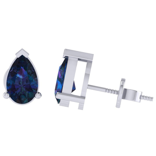 Gold Plated Sterling Silver Pear Shape Alexandrite Gemstone(June Birthstone) Stud Earring