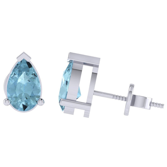 Gold Plated Sterling Silver Pear Shape Aquamarine Gemstone(March Birthstone) Stud Earring